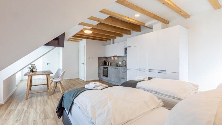 Die Unterkünfte sind mit einer voll ausgestatteten Küche ausgestattet, die einen Kühlschrank, Geschirrspüler, Ofen, Kaffeemaschine und Wasserkocher umfasst. Jedes Zimmer verfügt zudem über einen Esstisch, einen Flachbild-TV mit Satellitenkanälen und ein eigenes Badezimmer mit Dusche, kostenfreien Pflegeprodukten und einem Haartrockner.