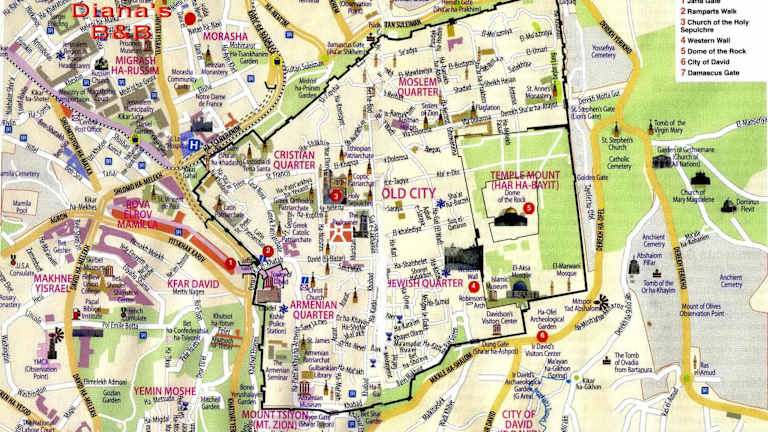 Das Diana's B&B liegt im historischen Viertel Musrara, nur 20 Gehminuten von der Klagemauer entfernt. Die Umgebung ist geprägt von traditionellen Steinhäusern und bietet eine authentische Atmosphäre. Die Altstadt von Jerusalem ist nur 10 Gehminuten entfernt, und Sehenswürdigkeiten wie der Felsendom und die Todesangstbasilika sind ebenfalls bequem zu erreichen. Der Flughafen Ben Gurion ist etwa 50 km entfernt und ein Flughafentransfer kann arrangiert werden.