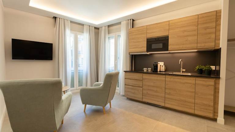 Die Zimmer sind mit einem Balkon und einem Stadtblick ausgestattet und bieten einen Sitzbereich sowie einen Flachbild-TV. Jede Suite verfügt über eine voll ausgestattete Küche mit Kühlschrank, Mikrowelle, Toaster und Kaffeemaschine. Das private Badezimmer ist mit einer Dusche und kostenlosen Pflegeprodukten ausgestattet.