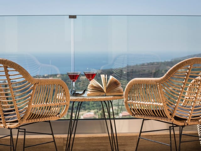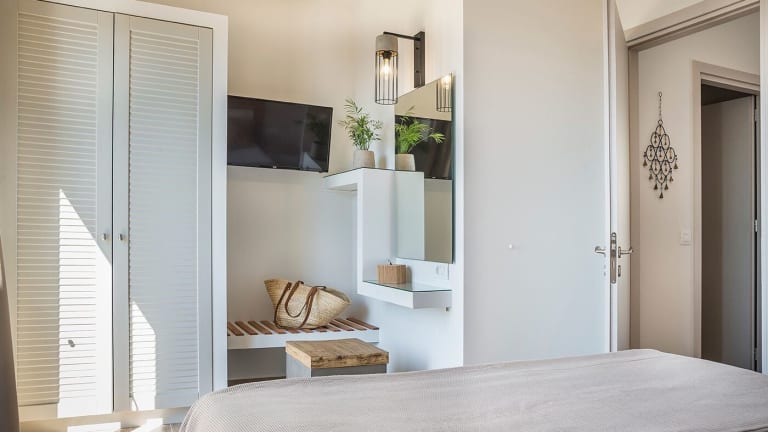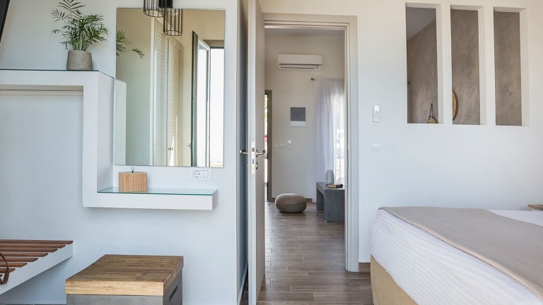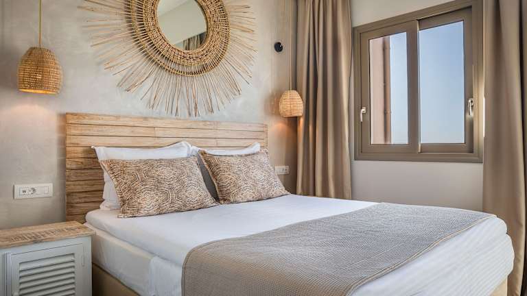 Die Zimmer sind mit einer Klimaanlage, einer Küche und einem Badezimmer ausgestattet. Jedes Zimmer bietet einen Balkon oder eine Terrasse mit Meerblick, ein Queensize-Bett oder Kingsize-Bett, ein Safe für Wertsachen, sowie eine Kochnische mit Kühlschrank und Tee-/Kaffeemaschine. SAT-TV und kostenloses WLAN sind ebenfalls vorhanden. Die Badezimmer sind mit einer Dusche und Pflegeprodukten ausgestattet.