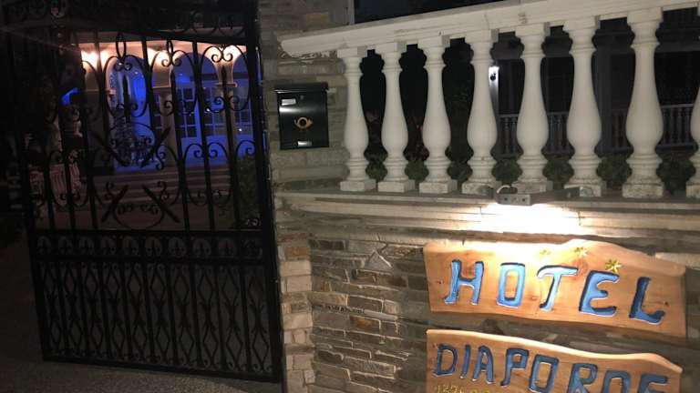 Das Diaporos Hotel bietet Übernachtungsmöglichkeiten in einem angenehmen Umfeld, ausgestattet mit einem Garten, einer Terrasse und einer Bar. Die Unterkunft stellt einen kostenlosen Privatparkplatz zur Verfügung und offeriert vielfältige Annehmlichkeiten wie einen Kinderclub und Zimmerservice. WLAN ist in allen Bereichen kostenlos erhältlich.