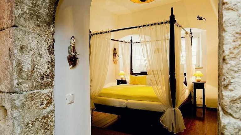 Die Zimmer sind nach verschiedenen Themen sehr liebevoll gestaltet, wir hatten ein indisches Zimmer.
