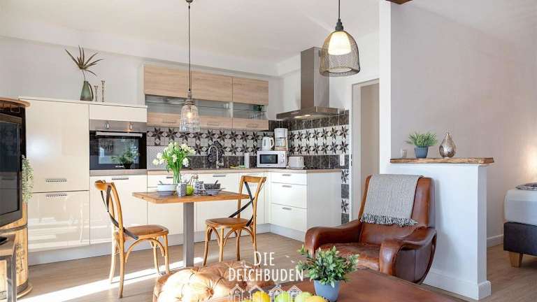 Die Deichbude 4 – Box 2 ist eine Ferienwohnung, die komfortable Übernachtungsmöglichkeiten bietet. Die Unterkunft verfügt über einen Garten und eine Terrasse sowie über kostenloses WLAN in allen Bereichen. Die ruhige Lage und die Nichtraucherunterkunft sorgen für eine angenehme Atmosphäre.