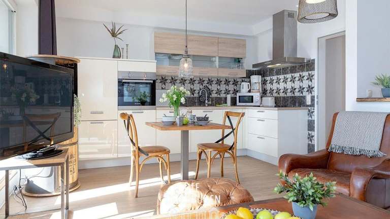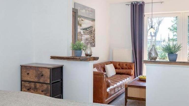 Die Ferienwohnung bietet ein Schlafzimmer, eine Küche, die mit einem Kühlschrank und einem Geschirrspüler ausgestattet ist, sowie ein Badezimmer mit einer Dusche, einem Haartrockner und einer Waschmaschine. Handtücher und Bettwäsche werden bereitgestellt. Die Wohnung ist als Nichtraucherunterkunft konzipiert.