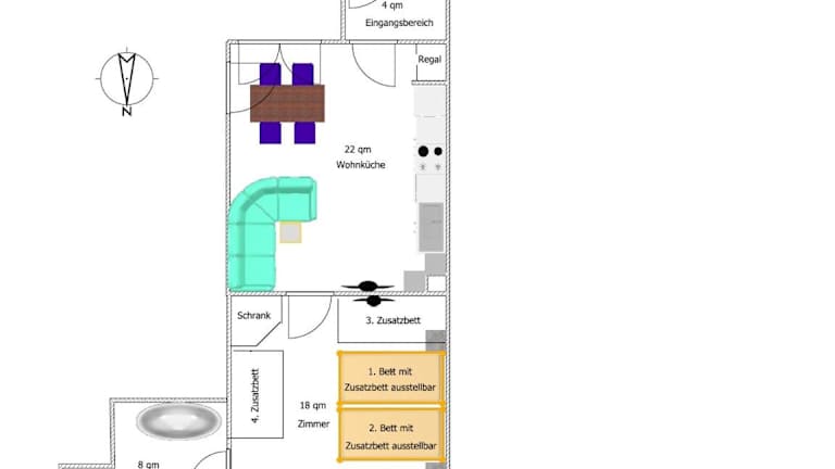 Die Ferienwohnung verfügt über ein Schlafzimmer, einen Flachbild-TV mit Satellitenkanälen, eine gut ausgestattete Küche mit Kühlschrank und Geschirrspüler sowie ein Badezimmer mit Dusche. Handtücher und Bettwäsche werden bereitgestellt. Es sind Nichtraucherzimmer sowie Familienzimmer vorhanden.