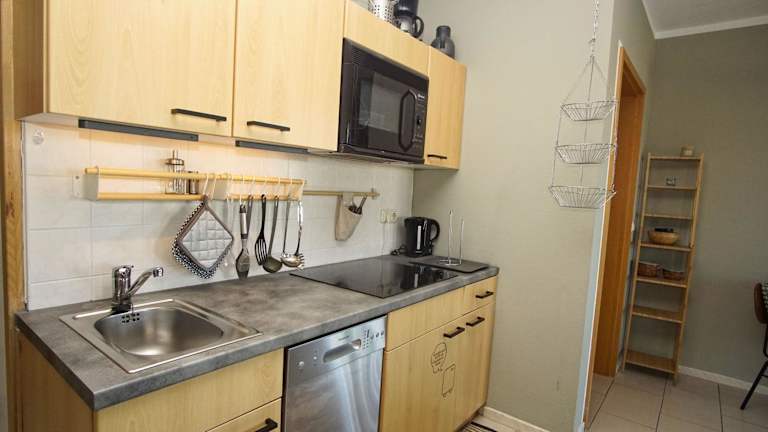 Die Ferienwohnung beinhaltet eine gut ausgestattete Küche, in der Gäste eigenständig ihre Mahlzeiten zubereiten können. Informationen zu zusätzlichen Verpflegungsmöglichkeiten sind nicht vorhanden.