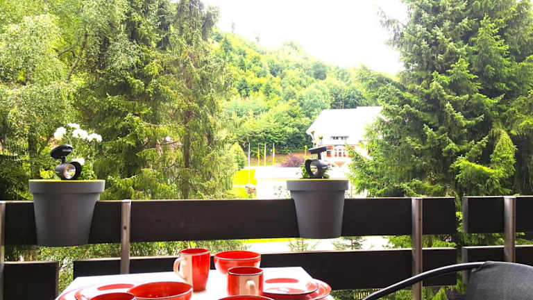 Die mit dem roten Baum ist eine Ferienwohnung, die Übernachtungsmöglichkeiten in Todtmoos bietet. Zu den Annehmlichkeiten gehört ein Innenpool sowie eine Terrasse.