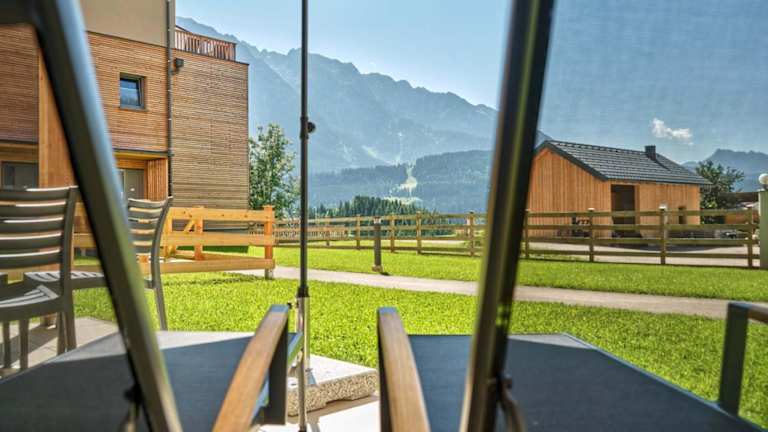 Die Tauplitz Lodges - Wasserfall Lodge C1 by AA Holiday Homes bietet eine Ferienwohnung mit Bergblick, einer Terrasse, einem Garten und kostenlosen Privatparkplätzen.