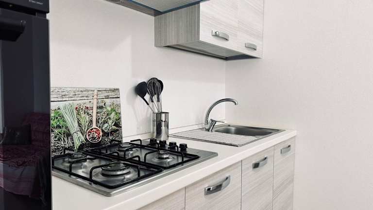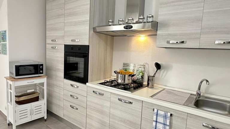 Die Unterkunft ist mit einer voll ausgestatteten Küche ausgestattet, die einen Kühlschrank, Ofen und Mikrowelle umfasst. Es gibt sowohl einen Sitzbereich als auch einen Essbereich in der Wohnung.