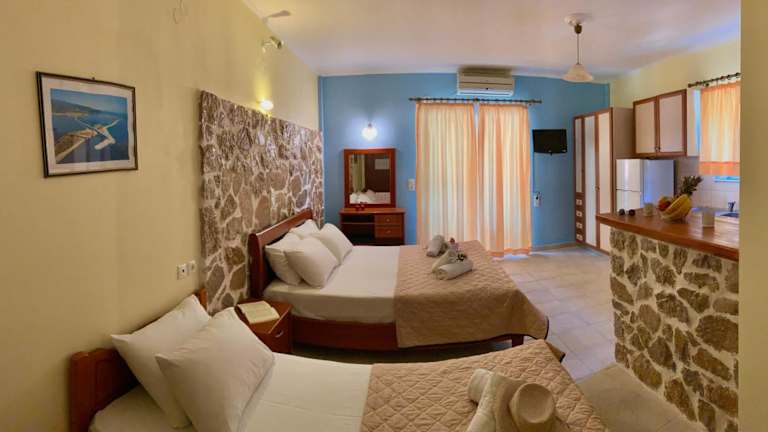 Die Dimarion Villas befinden sich in Agios Nikitas, nur 1 km von den beliebten Stränden Kathisma und Pefkoulia entfernt. Diese Lage bietet Ihnen die Möglichkeit, die Schönheit der griechischen Küste zu genießen und gleichzeitig eine ruhige und entspannte Umgebung zu erleben. Der Flughafen Aktio ist ebenfalls leicht erreichbar und nur 20 km entfernt.