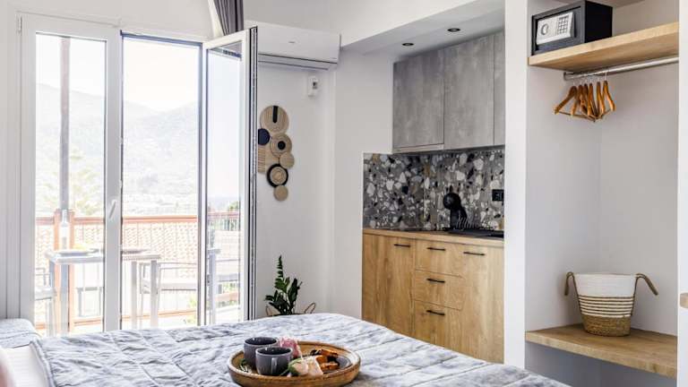 Die Wohneinheiten sind mit einem Balkon ausgestattet, der entweder einen Blick auf die Stadt oder das Meer bietet. Zu den Annehmlichkeiten gehören ein Flachbild-TV, eine gut ausgestattete Küchenzeile, ein eigenes Badezimmer mit Badewanne oder Dusche sowie Haartrockner. Weitere Ausstattungsmerkmale sind eine Minibar, eine Herdplatte, eine Kaffeemaschine und ein Wasserkocher.