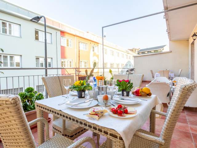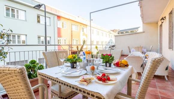 Es wird ein Frühstück angeboten, das eine Auswahl an kontinentalen und italienischen Optionen in Buffetform umfasst. Zudem können spezielle Ernährungsbedürfnisse auf Anfrage berücksichtigt werden.