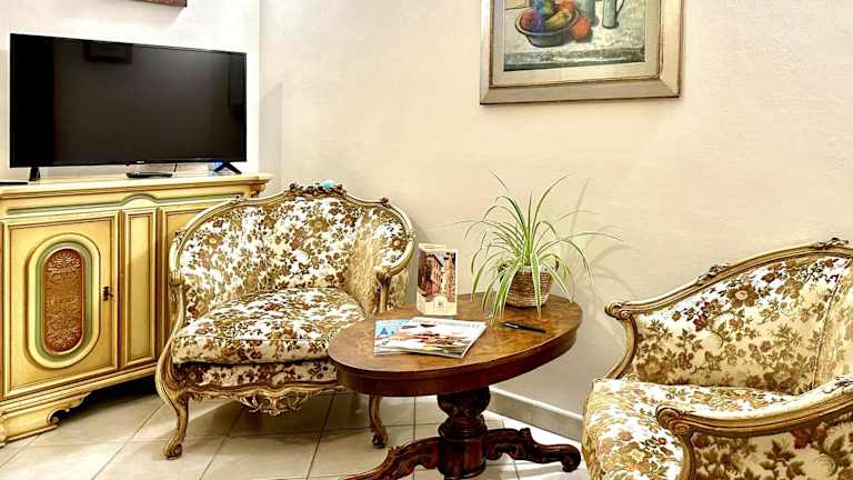 Die Ferienwohnung besteht aus 2 Schlafzimmern, einem Wohnzimmer, einem Badezimmer mit Bidet und Dusche sowie der genannten voll ausgestatteten Küche. Handtücher und Bettwäsche werden bereitgestellt.