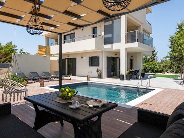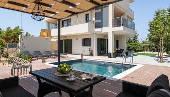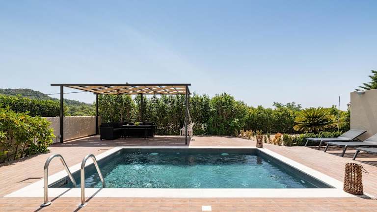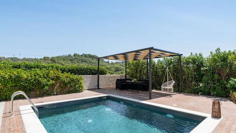 Dioni Pool House bietet eine ansprechende Übernachtungsmöglichkeiten mit Blick auf die Berge und umfasst einen saisonalen Außenpool sowie eine Veranda oder einen Patio.