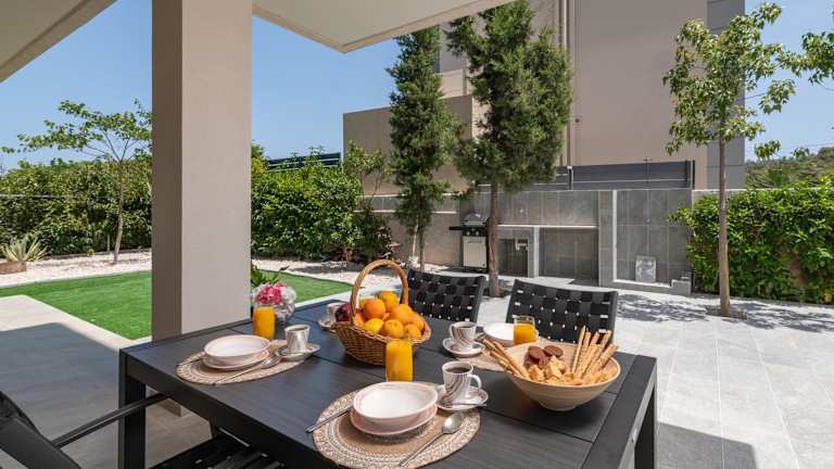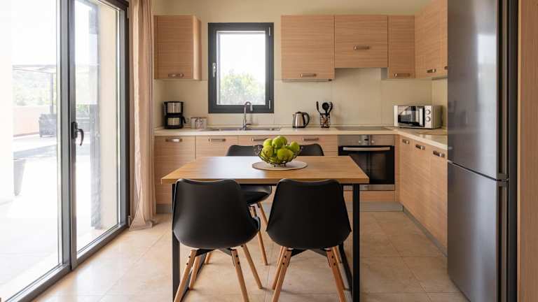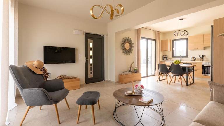 Die Villa ist klimatisiert und verfügt über zwei Schlafzimmer, ein Wohnzimmer sowie eine voll ausgestattete Küche mit Kühlschrank und Kaffeemaschine. Des Weiteren gibt es ein Badezimmer mit einer Badewanne und einem Haartrockner. Handtücher und Bettwäsche werden bereitgestellt. Ein eigener Pool und ein Garten sind ebenfalls vorhanden.
