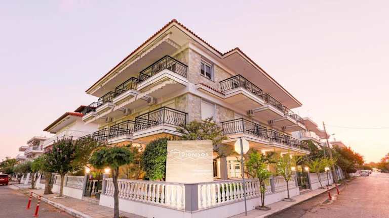 Die Dionisos Apartments befinden sich in Paralia Dionisiou, nur 100 m vom Strand Dyonisou entfernt. Innerhalb von 19 km sind das Anthropologische Museum und die Höhle von Petralona erreichbar. Der Flughafen Thessaloniki liegt in einer Entfernung von 49 km. Weitere Attraktionen wie das Regency Casino Thessaloniki und das Noesis Wissenschaftszentrum und Technisches Museum befinden sich ebenfalls in der näheren Umgebung.