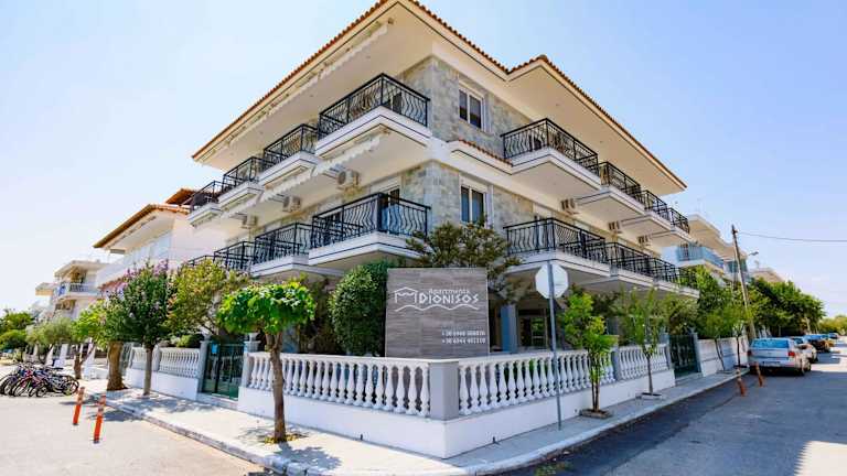 Die Unterkunft Dionisos Apartments bietet moderne Wohneinheiten mit Klimaanlage und kostenlosem WLAN. Die Anlage umfasst einen Garten und eine Terrasse sowie eine Gemeinschaftslounge. Es stehen kostenlose Fahrräder zur Verfügung. Die Unterkunft ist Nichtraucher und erlaubt Haustiere auf Anfrage.