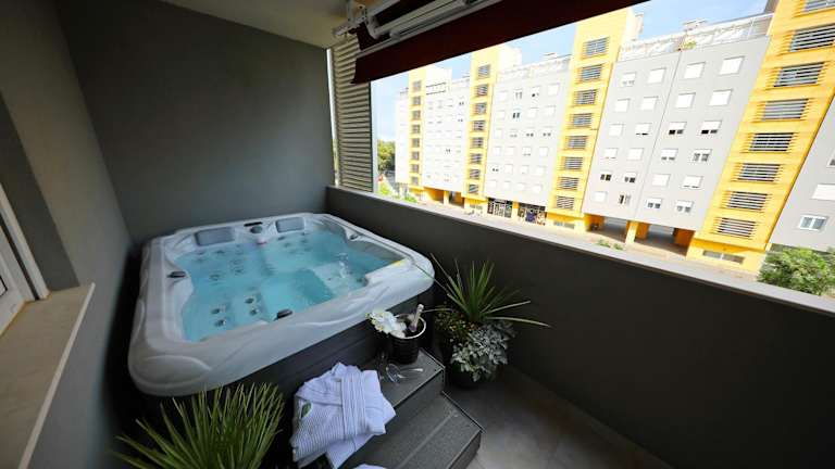 Die Ferienwohnung umfasst 2 Schlafzimmer, ein Wohnzimmer sowie eine voll ausgestattete Küche, die mit einem Kühlschrank und einer Kaffeemaschine ausgestattet ist. Das Badezimmer verfügt über eine Dusche und einen Whirlpool. Handtücher und Bettwäsche sind in der Unterkunft vorhanden. Die Klimaanlage sorgt für zusätzlichen Komfort.