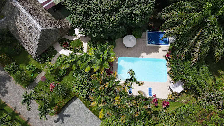 • Die Umgebung ist schön mit einem gepflegten Garten und Pool.