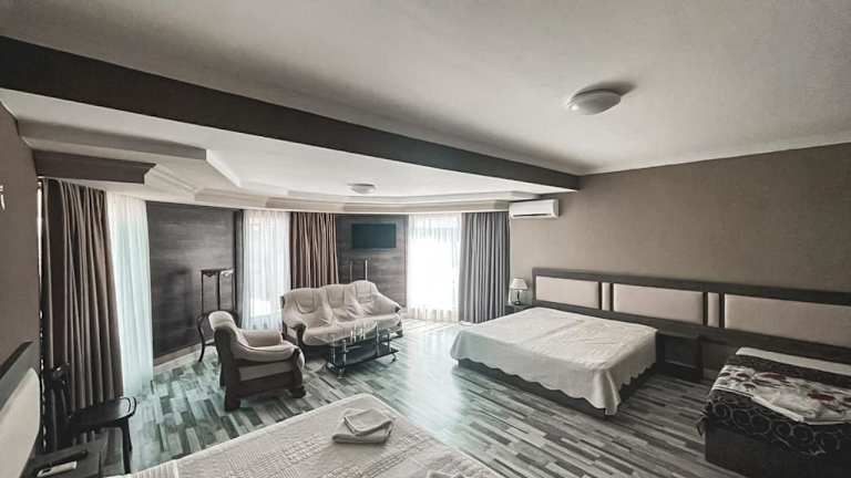Das Discovery Hotel bietet eine ideale Lage im historischen Zentrum von Kutaisi und ist nur wenige Gehminuten von den wichtigsten Sehenswürdigkeiten der Stadt entfernt. Die Zimmer sind komfortabel und modern eingerichtet und bieten einen herrlichen Blick auf die Stadt. Das hoteleigene Restaurant serviert köstliche georgische und europäische Gerichte. Das freundliche Personal steht Ihnen rund um die Uhr zur Verfügung und organisiert gerne Aktivitäten wie Reiten, Rafting und Wanderausflüge. Ein kostenloser WLAN-Zugang und kostenlose Parkplätze sind ebenfalls vorhanden.
