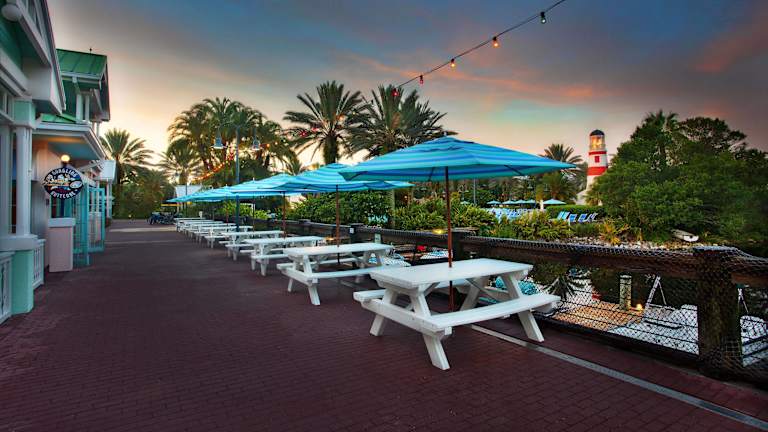 Im Disney's Old Key West Resort gibt es ein Nichtraucherrestaurant, einen Speiseraum und eine Bar. Die Gäste können zwischen einem Frühstücksbuffet und Menüs für Mittag- und Abendessen wählen.