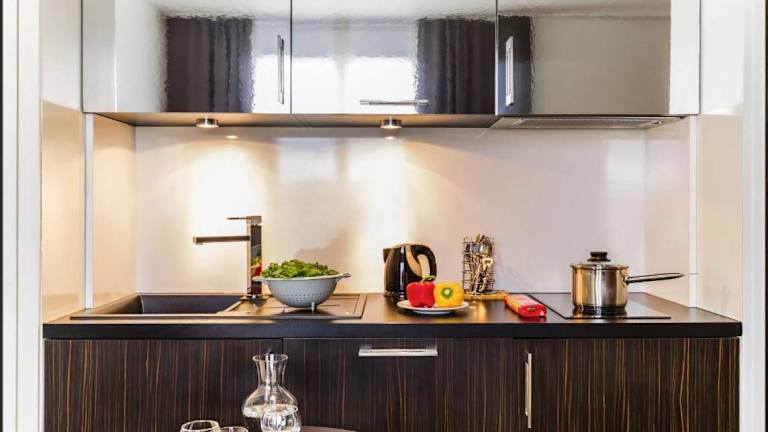 Die Unterkunft bietet ein Frühstück in Form eines Buffets oder kontinentalen Frühstücks. Eine voll ausgestattete Küche ist vorhanden, ausgestattet mit Kühlschrank, Geschirrspüler, Mikrowelle, Kaffeemaschine und Wasserkocher.