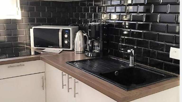 Die Ferienwohnung umfasst ein Schlafzimmer, ein Wohnzimmer, eine voll ausgestattete Küche mit Kühlschrank und Kaffeemaschine sowie ein Badezimmer mit Badewanne und Haartrockner. Handtücher und Bettwäsche werden bereitgestellt. Es gibt einen privaten Parkplatz und eine Terrasse.