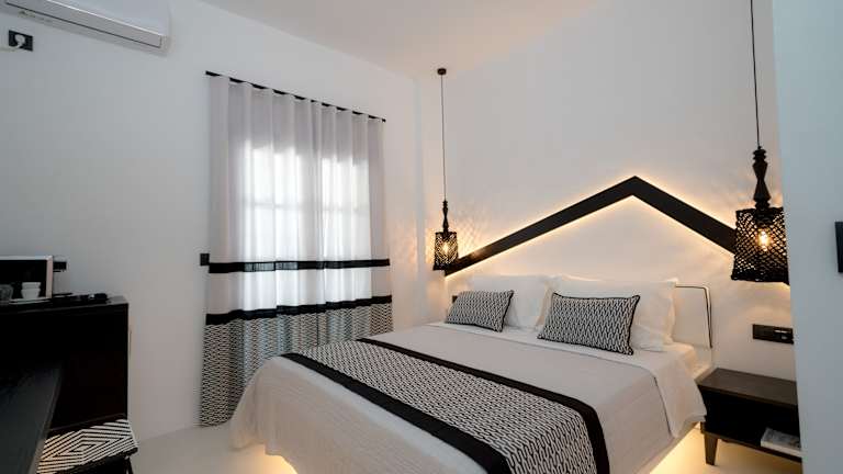 Die 18 Nichtraucherzimmer im Divelia Hotel sind klimatisiert und verfügen über einen eigenen Balkon oder eine Veranda. Jedes Zimmer bietet einen gemütlichen Sitzbereich und ein eigenes Badezimmer mit Dusche und kostenfreien Pflegeprodukten. Zur Ausstattung gehören auch ein Kühlschrank, ein Wasserkocher und eine Kaffeemaschine.