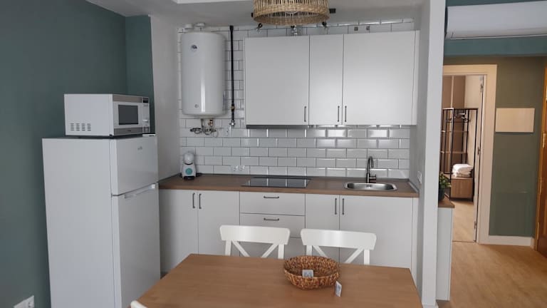 Die Ferienwohnung besteht aus 1 separatem Schlafzimmer, einer voll ausgestatteten Küche mit Kühlschrank und Mikrowelle sowie 1 Badezimmer. Handtücher und Bettwäsche werden bereitgestellt.