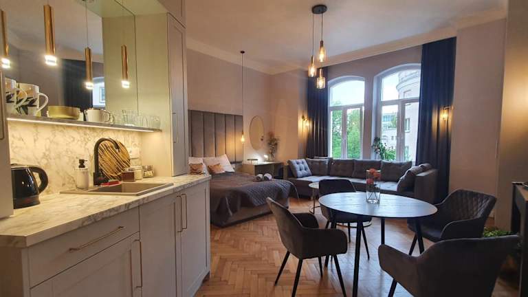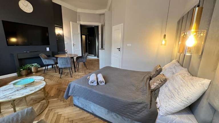 Das DK Premium Ballady i Romanse in Olsztyn bietet Ihnen einen angenehmen Aufenthalt mit Stadtblick und kostenfreiem WLAN. Die Wohneinheiten sind modern und komfortabel eingerichtet und verfügen über eine voll ausgestattete Küchenzeile. Beliebte Sehenswürdigkeiten wie das Neue Rathaus, das Hohe Tor und der Fischmarkt befinden sich in der Nähe des Apartments. Der Flughafen Olsztyn-Mazury ist ebenfalls gut zu erreichen.