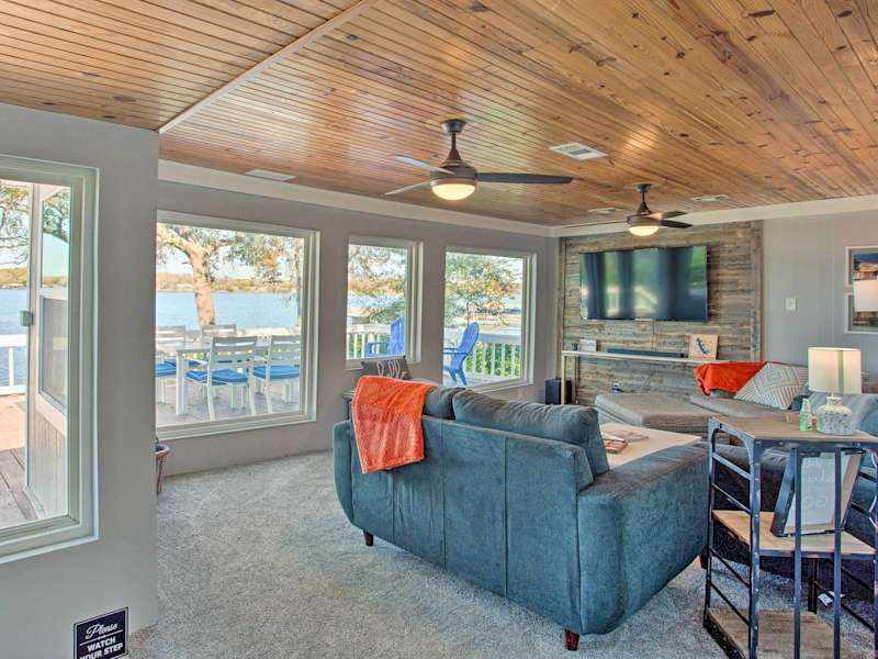Dock and Fire Pit Lakefront Cedar Creek Home! bietet klimatisierte Ferienhausunterkünfte mit Balkon und kostenlosem WLAN. Das Haus verfügt über eine Veranda/Patiobereich.
