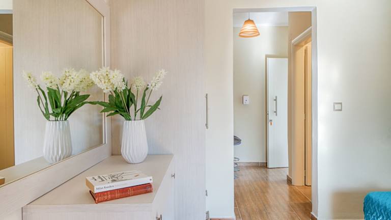 Die Dolphin Apartments befinden sich in einer großartigen Lage in Paleokastritsa, nur 400 m vom wunderschönen Strand Agia Triada entfernt. In der Nähe gibt es auch andere beliebte Strände wie den Strand Spiros (600 m) und den Strand Verderosa (700 m). Die Apartments sind von einem Garten umgeben und bieten eine ruhige und entspannte Atmosphäre. Der internationale Flughafen Korfu ist nur 22 km entfernt, was die Anreise einfach und bequem macht.