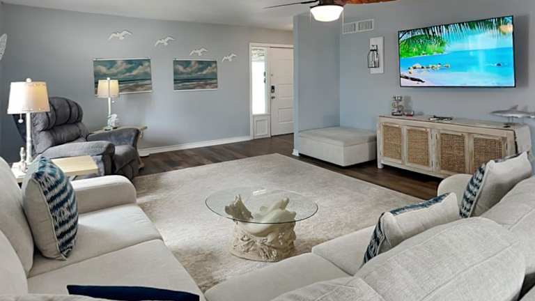 Dolphin Paradise ist ein Ferienhaus mit 4 Schlafzimmern, ausgestattet mit Klimaanlage, TV und einer voll ausgestatteten Küche, die über Kühlschrank und Geschirrspüler verfügt. Die Unterkunft bietet kostenloses WLAN in allen Bereichen und ermöglicht einen kontaktlosen Check-in/Check-out.