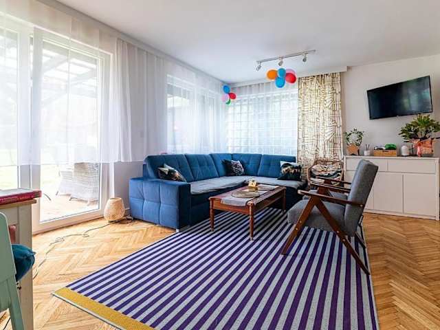 Das Ferienhaus DOM 4 SEZONY bietet 4 geräumige Schlafzimmer, die Ihnen eine angenehme Nachtruhe ermöglichen. Das Wohnzimmer lädt zum Entspannen ein und die gut ausgestattete Küche ermöglicht es Ihnen, Ihre eigenen Mahlzeiten zuzubereiten. Der Flachbild-TV sorgt für Unterhaltung und das kostenfreie WLAN hält Sie mit der Außenwelt verbunden.