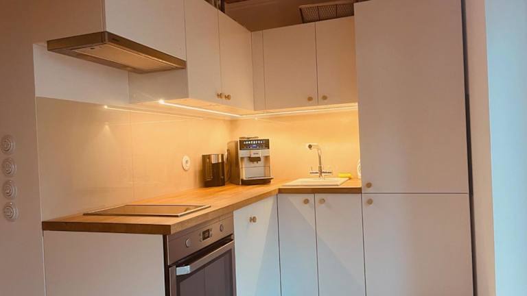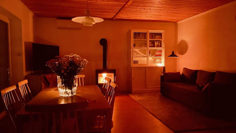 Das Ferienhaus ist klimatisiert und verfügt über zwei Schlafzimmer, ein Wohnzimmer sowie eine voll ausgestattete Küchenzeile mit Kühlschrank und Kaffeemaschine. Das Badezimmer ist mit einer Dusche und einem Haartrockner ausgestattet, und es werden Handtücher sowie Bettwäsche bereitgestellt.