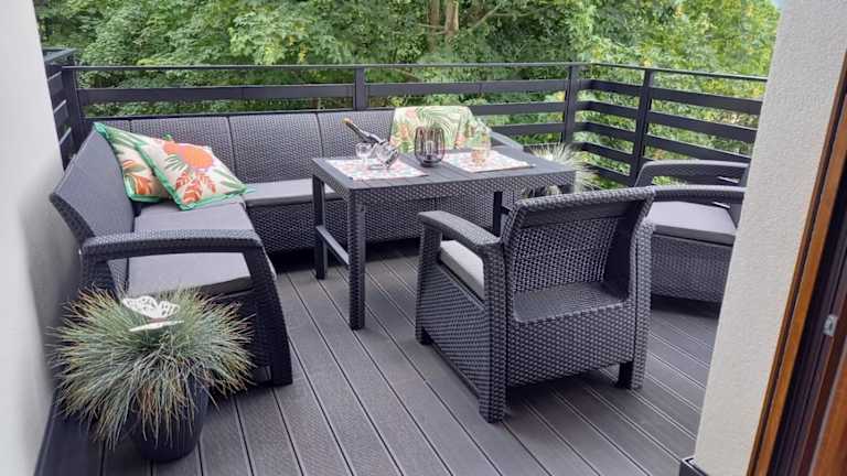 Die Ferienwohnung beinhaltet eine Gemeinschaftsküche, die mit einem Kühlschrank und einem Geschirrspüler ausgestattet ist. Es sind keine weiteren Verpflegungsmöglichkeiten angegeben.