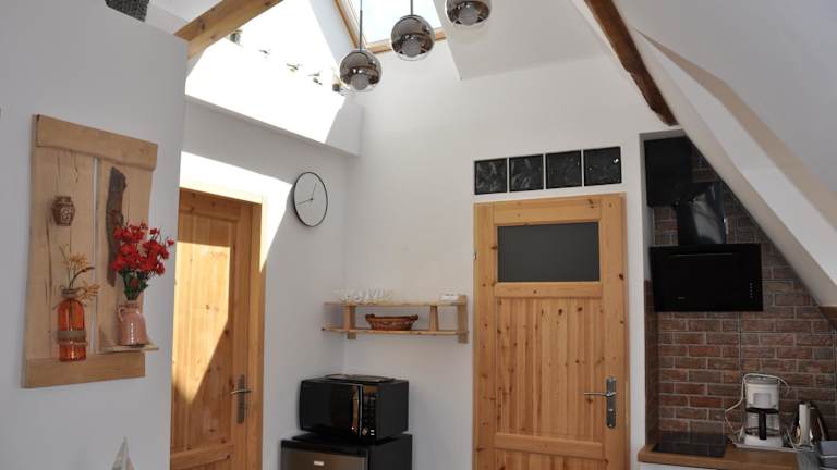 In der Unterkunft gibt es Annehmlichkeiten wie einen Kühlschrank, eine Mikrowelle und einen Wasserkocher, die eine Selbstversorgung ermöglichen.