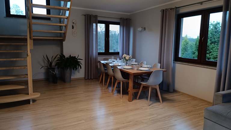 Die Unterkunft Dom nad jeziorem - Natalia befindet sich in Kołczewo, in einer malerischen Umgebung mit Blick auf den See. Die Nähe zu Wander- und Angelmöglichkeiten ist gegeben.