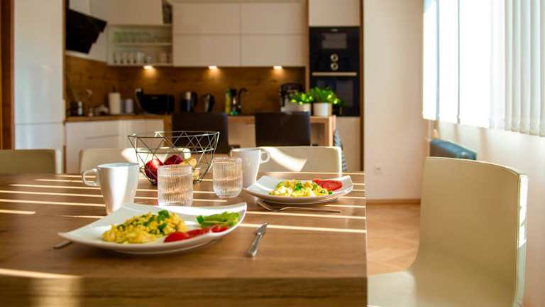 In der Gemeinschaftsküche des Ferienhauses können Sie Ihre eigenen Mahlzeiten zubereiten und in gemütlicher Atmosphäre genießen. Alternativ können Sie auch die nahegelegenen Restaurants erkunden und die lokale Küche probieren. Die Rezeption des Ferienhauses steht Ihnen gerne zur Verfügung, um Ihnen Informationen über die Umgebung und empfehlenswerte Restaurants zu geben.