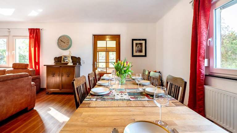 Domäne Bollinger Morbach ist ein Ferienhaus, das Übernachtungsmöglichkeiten mit einem Balkon und kostenlosem WLAN bietet. Die Unterkunft ist geräumig und beinhaltet 4 Schlafzimmer sowie 2 Badezimmer. Zur Ausstattung gehören Bettwäsche, Handtücher und ein TV mit Satellitenkanälen.