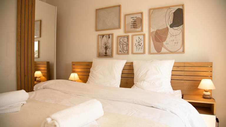 Die Ferienwohnung verfügt über zwei Schlafzimmer und einen Flachbild-TV. Eine voll ausgestattete Küche steht den Gästen zur Verfügung und beinhaltet Annehmlichkeiten wie einen Kühlschrank, Geschirrspüler, Waschmaschine, Ofen und Mikrowelle. Handtücher und Bettwäsche werden bereitgestellt. Die Unterkunft beinhaltet Nichtraucherzimmer und bietet eine Terrasse.