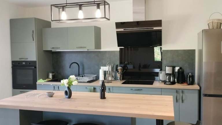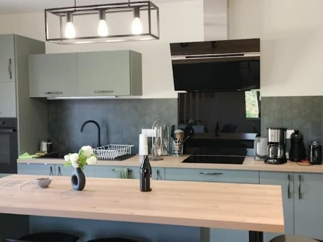 Die Unterkunft ist mit einer gut ausgestatteten Küche versehen, die einen Kühlschrank und einen Geschirrspüler beinhaltet. Grillmöglichkeiten sind ebenfalls vorhanden.