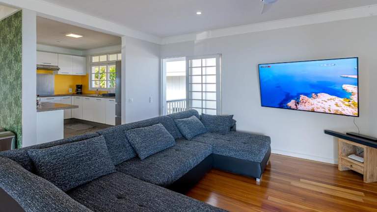 Das Domaine To'a Hotu in Punaauia bietet Ihnen eine wunderschöne Strandvilla mit atemberaubendem Meerblick. Genießen Sie den Zugang zum eigenen Strandbereich und entspannen Sie im Garten oder auf der Terrasse. Die voll ausgestattete Küche und die luxuriösen Schlafzimmer sorgen für einen komfortablen Aufenthalt. Der Strand Maui ist nur 1 km entfernt und die Faarumai-Wasserfälle erreichen Sie nach 45 km.