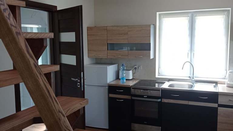 DOMEK ANNY ist ein Ferienhaus, das über einen Balkon und eine Terrasse verfügt. Die Unterbringung bietet Platz für Gäste in zwei Schlafzimmern sowie in einem Wohnzimmer. Eine gut ausgestattete Küche ist ebenfalls vorhanden.