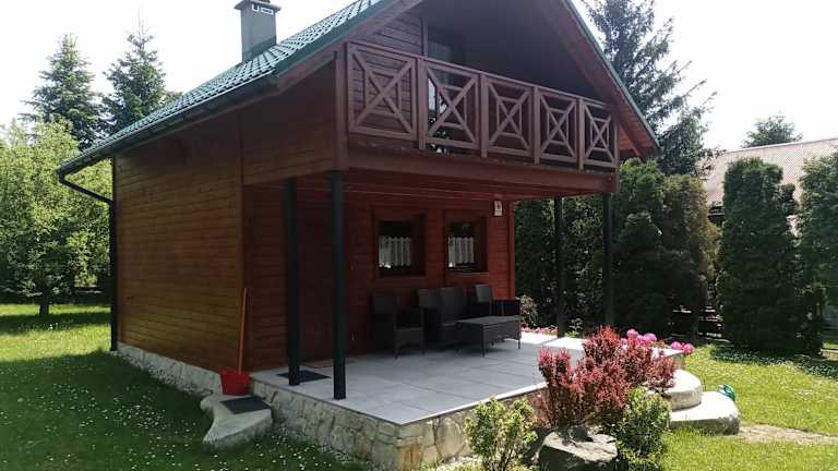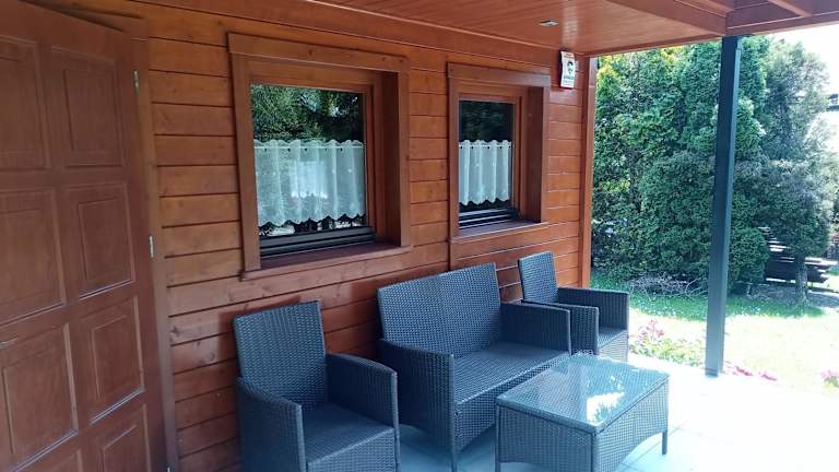 Das Ferienhaus Domek całoroczny bietet gemütliche Schlafzimmer, ein Wohnzimmer mit Flachbild-TV und eine voll ausgestattete Küche. Der Balkon und die Terrasse bieten einen schönen Blick auf den Garten. Handtücher und Bettwäsche werden im Ferienhaus gestellt, so dass Sie sich um nichts kümmern müssen.