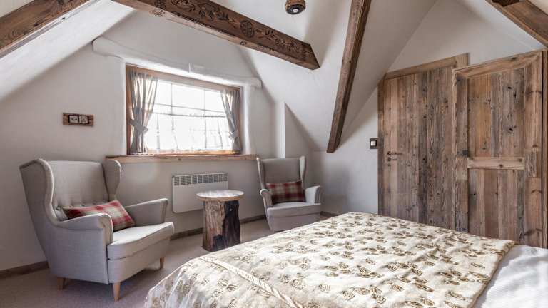 Das Chalet umfasst zwei Schlafzimmer, ein Wohnzimmer mit Flachbild-TV und eine gut ausgestattete Küche mit Kühlschrank und Geschirrspüler. Ein Badezimmer mit Dusche ist ebenfalls vorhanden. Handtücher und Bettwäsche werden bereitgestellt.
