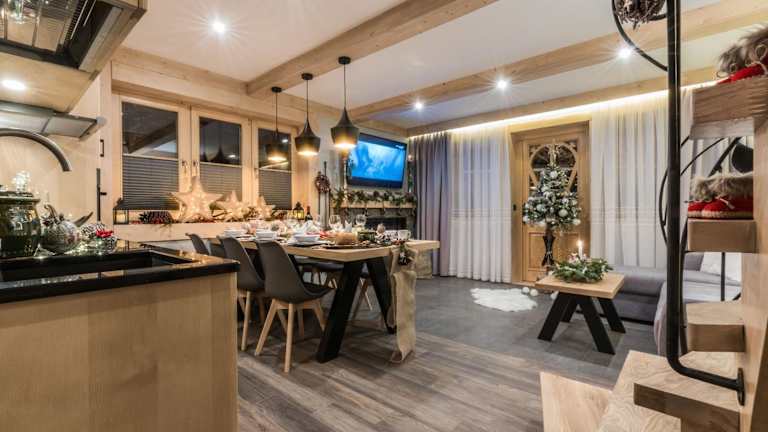 Das Domek Góralski - Górski HYR in Zakopane ist die ideale Unterkunft für einen gelungenen Urlaub. Mit seiner erstklassigen Lage in der Nähe der berühmten Straße Krupówki und nur wenige Kilometer vom Skilift Szymoszkowa entfernt, bietet dieses Chalet alles, was man für einen perfekten Aufenthalt benötigt. Mit kostenfreiem WLAN, Grillmöglichkeiten und einer 24-Stunden-Rezeption werden Sie sich hier rundum wohl fühlen. Die gemütlichen Zimmer, die gut ausgestattete Küchenzeile und die beiden Badezimmer sorgen dafür, dass es Ihnen an nichts mangelt. Genießen Sie den atemberaubenden Blick auf die Stadt von der Terrasse aus und nutzen Sie die Skiaufbewahrung für Ihre Ausrüstung. Der Nationalpark Tatra und der Wasserpark Zakopane sind nur einen Katzensprung entfernt und bieten Ihnen weitere Möglichkeiten für Aktivitäten und Erholung.
