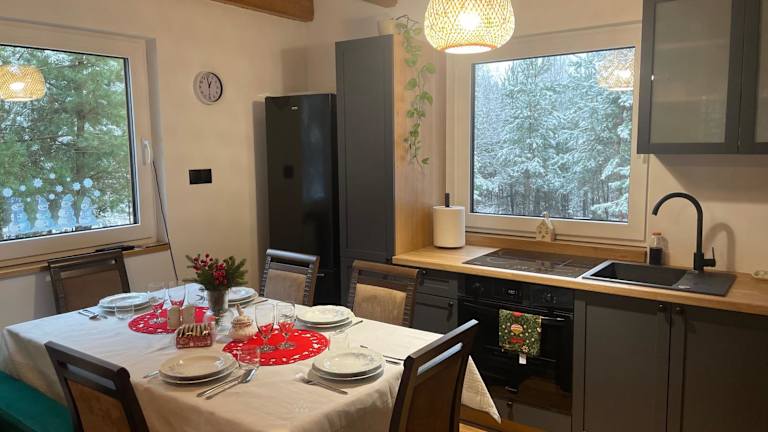 Domek na Zagórze ist eine ganzjährig verfügbare Unterkunft, die den Gästen eine gemütliche Atmosphäre bietet. Die Ferienwohnung ist ideal für Familien oder Gruppen und bietet einen direkten Zugang zur Natur.