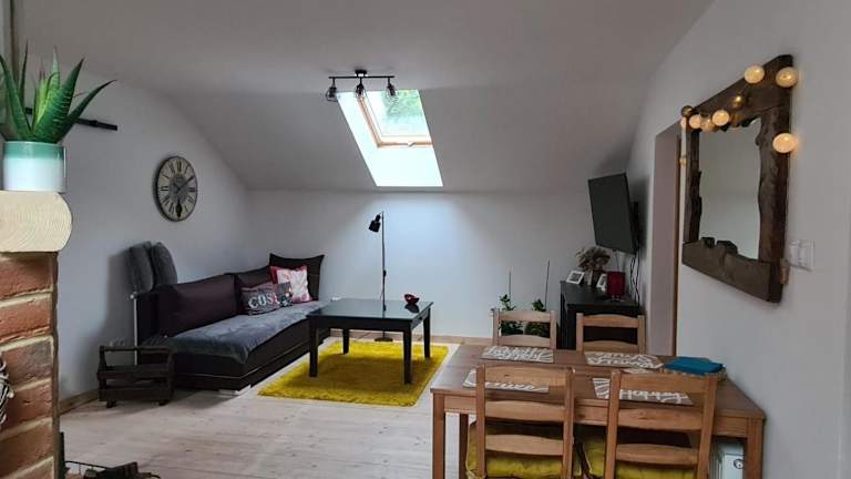 Die Unterkunft befindet sich in Bełchów, etwa 70 km vom Chopin-Flughafen Warschau entfernt. Die Umgebung bietet eine ruhige Atmosphäre und einen Blick auf den Garten.