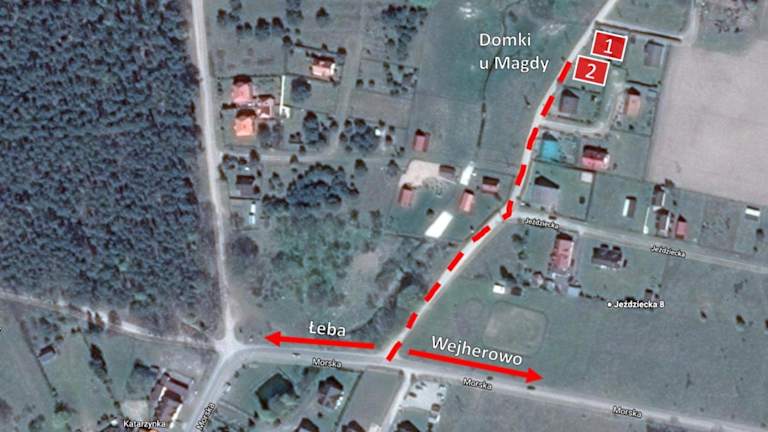 Die Unterkunft befindet sich in Sasino in der Region Pommern. In der näheren Umgebung sind Sehenswürdigkeiten wie der Leuchtturm in Stilo, der 6,1 km entfernt ist, sowie das Teutonic Castle in Lębork, das sich 37 km entfernt befindet. Der nächste Bahnhof ist Łeba, welcher 21 km entfernt ist. Der Lech-Wałęsa-Flughafen Danzig liegt 82 km von der Unterkunft entfernt.